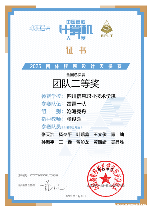 在国内计算机教育领域极具影响力的品牌赛事——第十届“中国高校计算机大赛——团体程序设计天梯赛”中,我院参赛团队凭借出色的协作能力和编程水平,斩获全国总决赛团队二等奖、三等奖各1项,以绝对优势位列全省高职院校第一名。